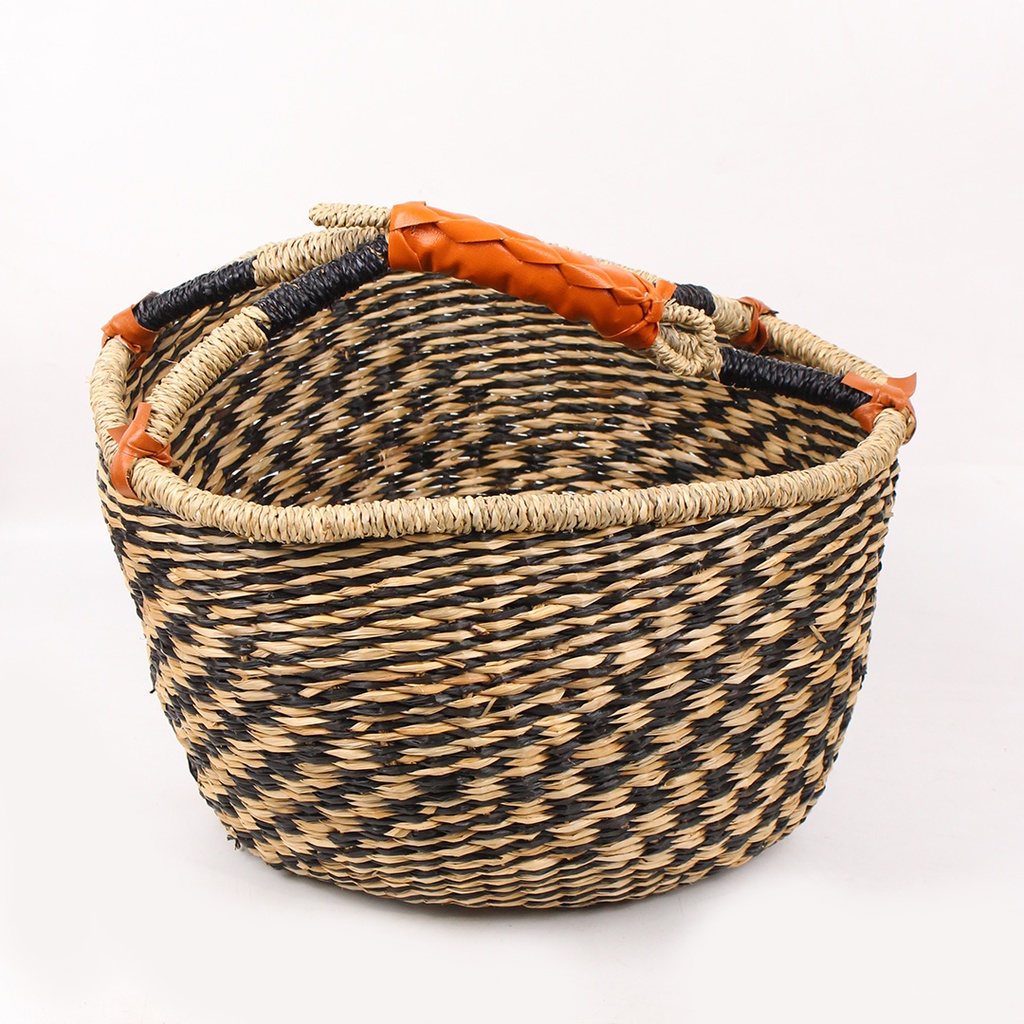 سلة مصنوعة من الخوص مع تغليفه يد مصنوعة من الجلد